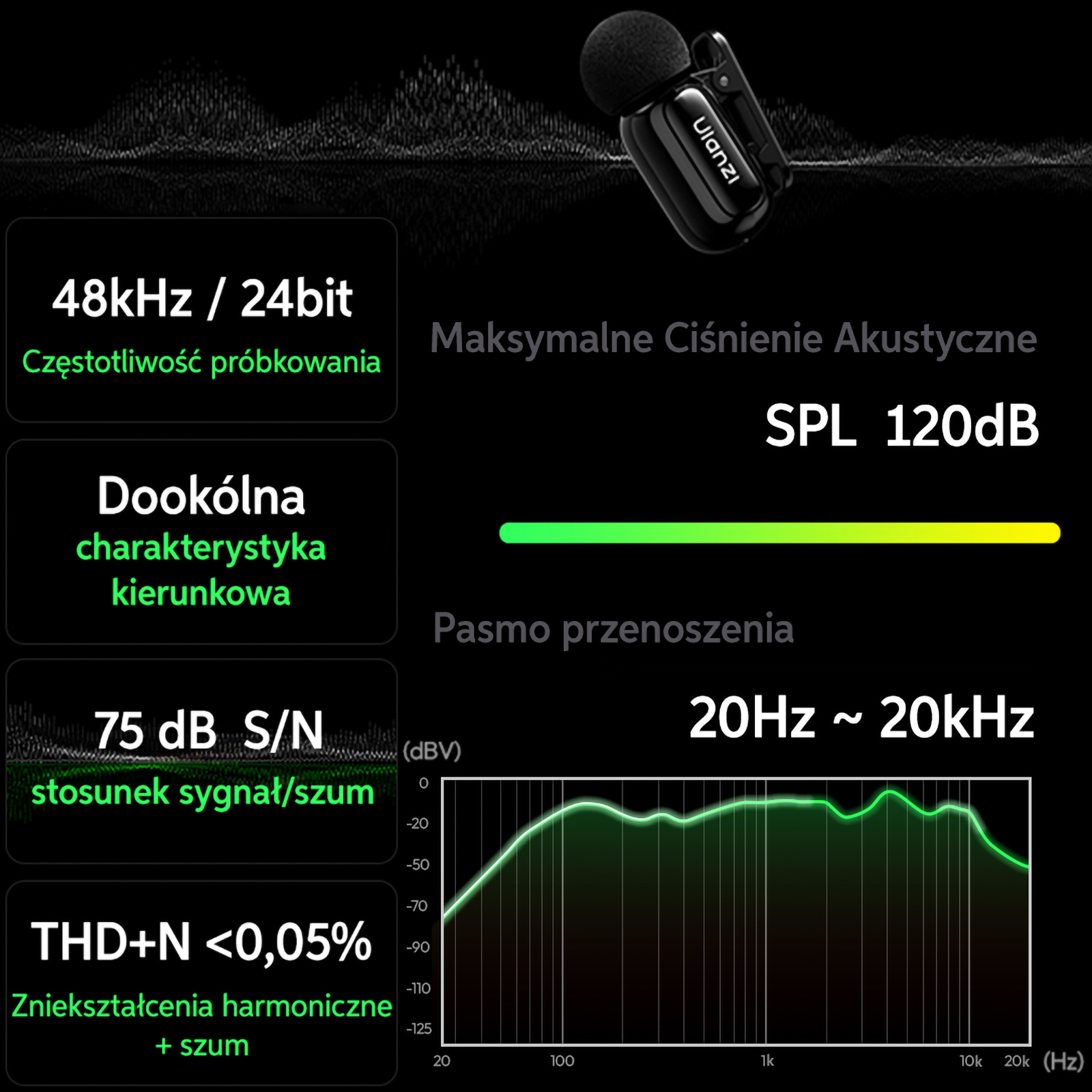 Bezprzewodowe mikrofony krawatowe ULANZI A200 MINI MIC 48kHz / 24bit