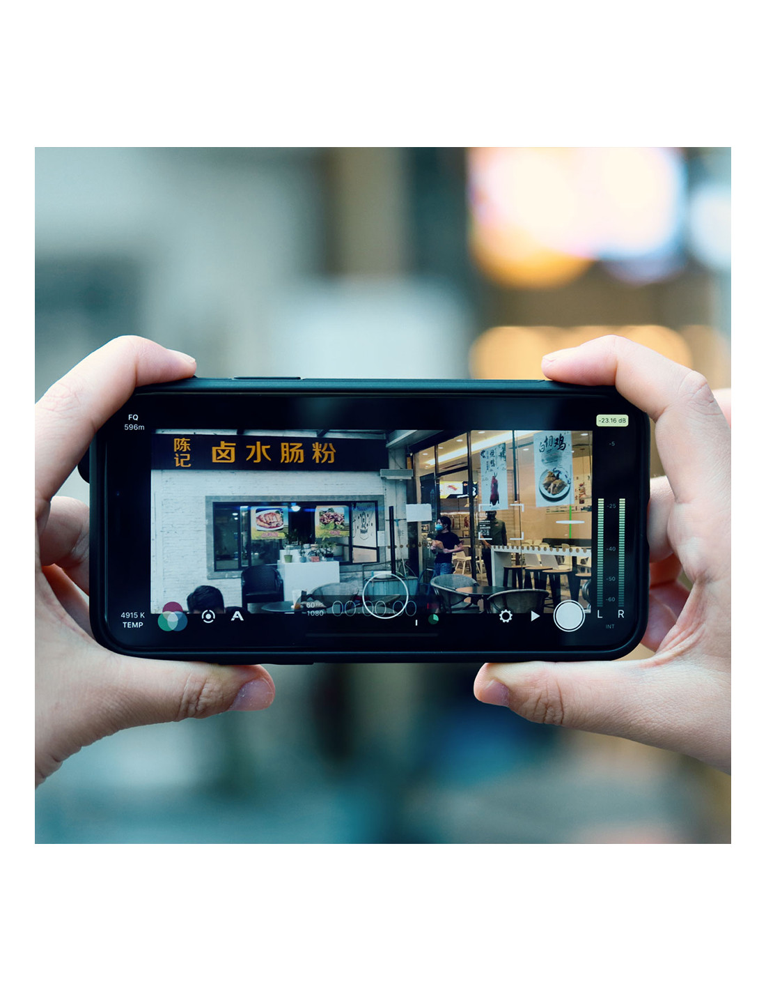 Obiektyw Ulanzi współpracuje ze standardową aplikacją aparatu oraz Filmic Pro, która umożliwia wykorzystanie w pełni wszystkich jego możliwości.
