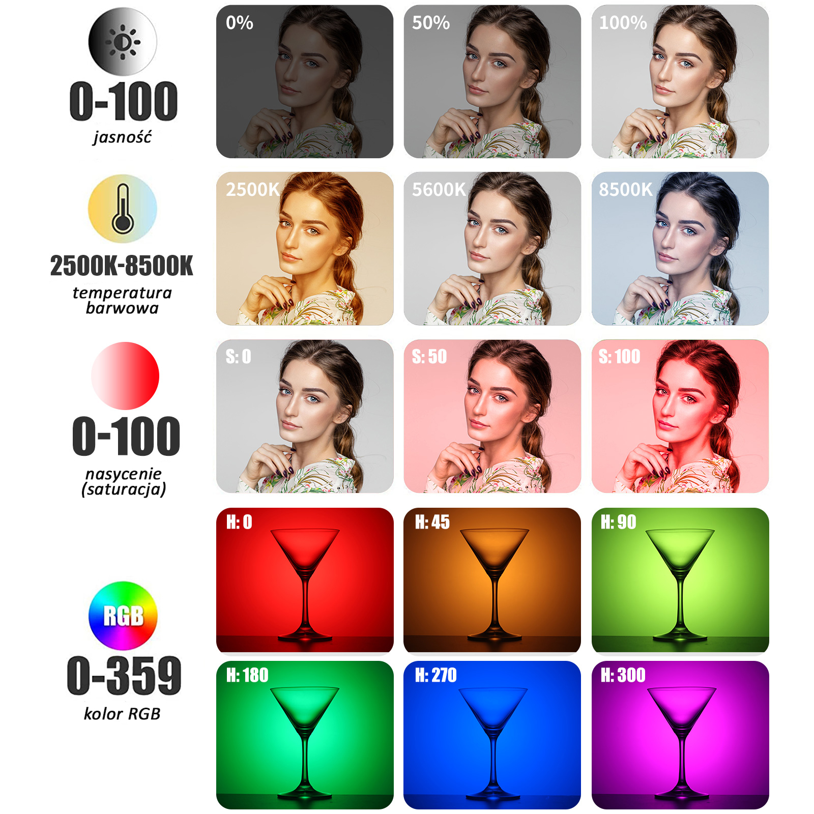 - 61 szt. (18 x biała-zimna, 18 x biała-ciepła, 25 x RGB)